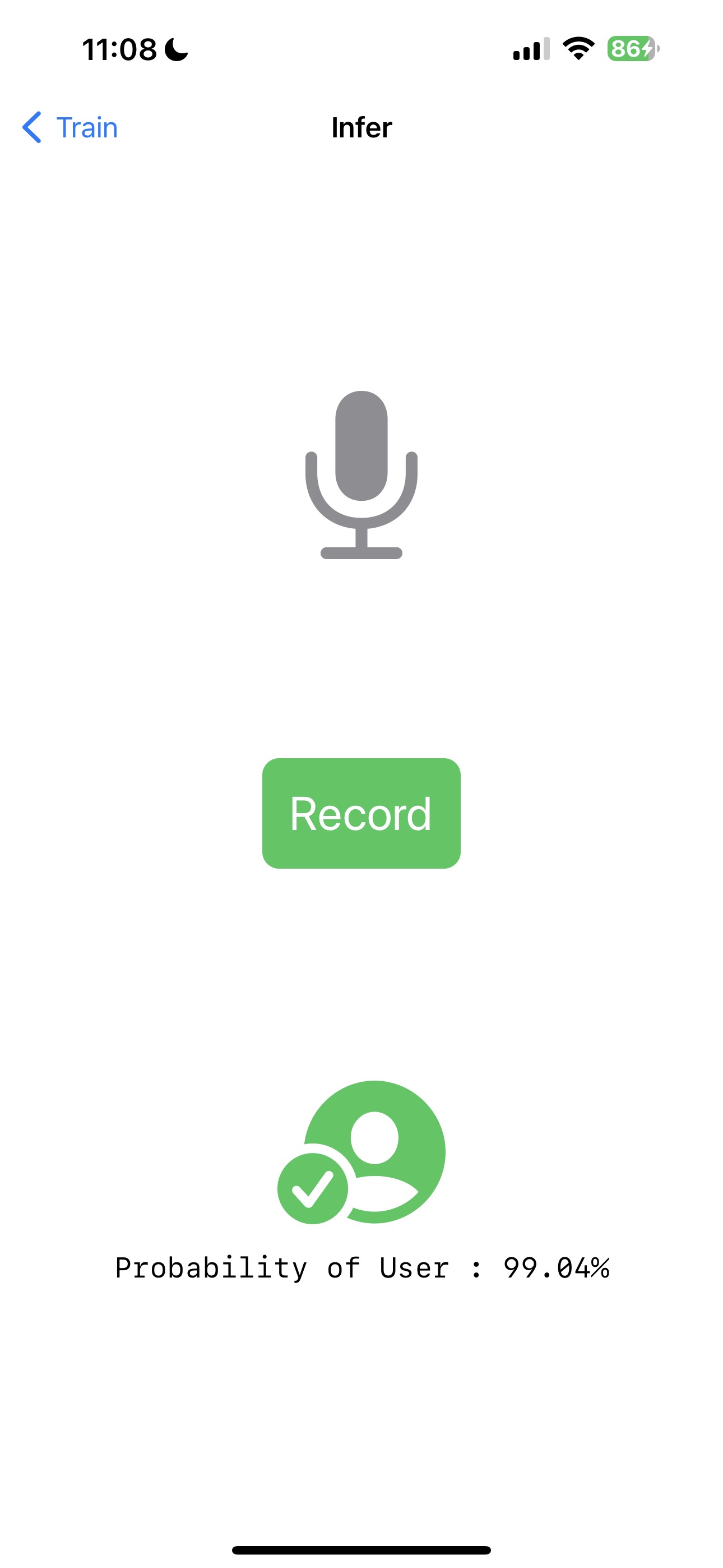 will prompt you to record your voice. Once the recording is complete, it will perform inference with the trained model and display the result of the inference.