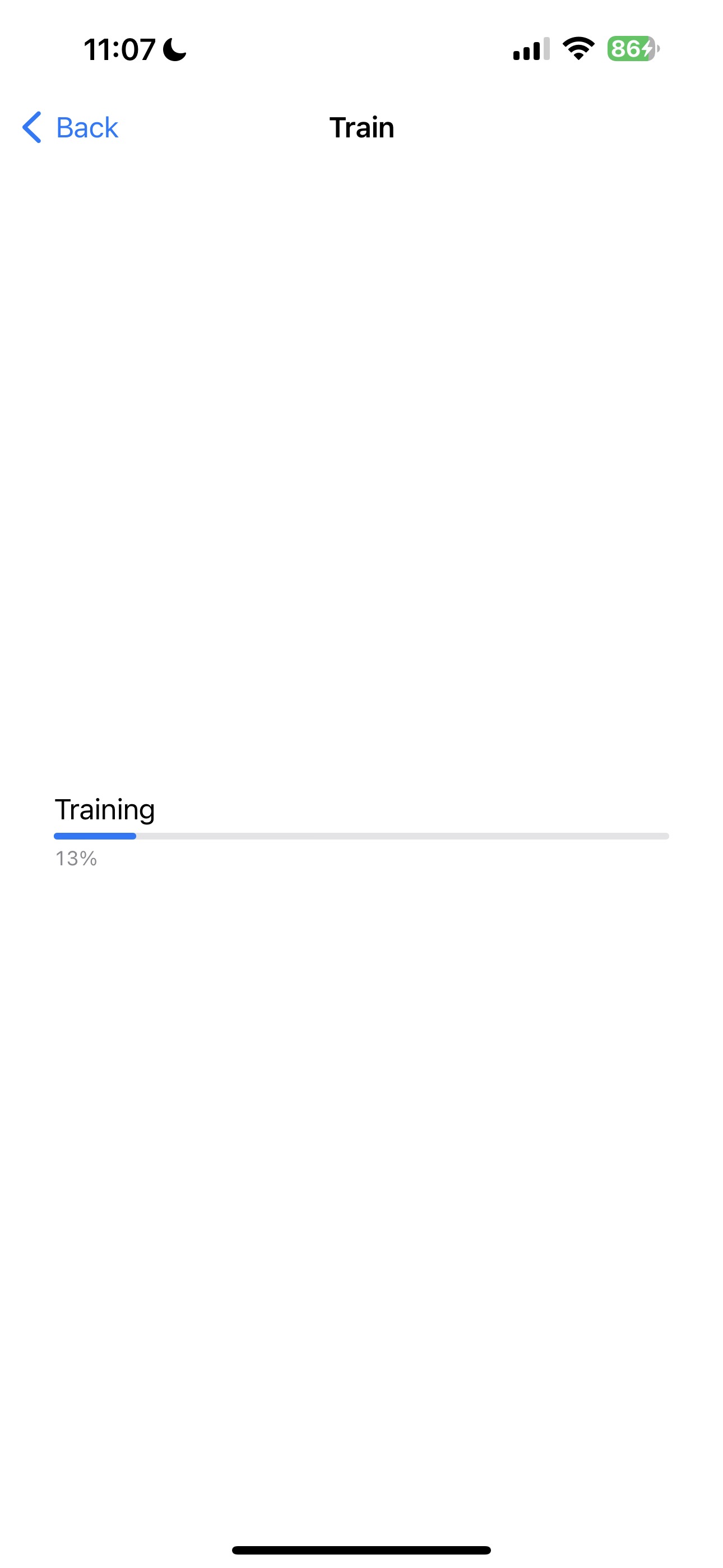 c. Once all the recordings are complete, the application will train the model on the given data. You will see the progress bar indicating the progress of the training.